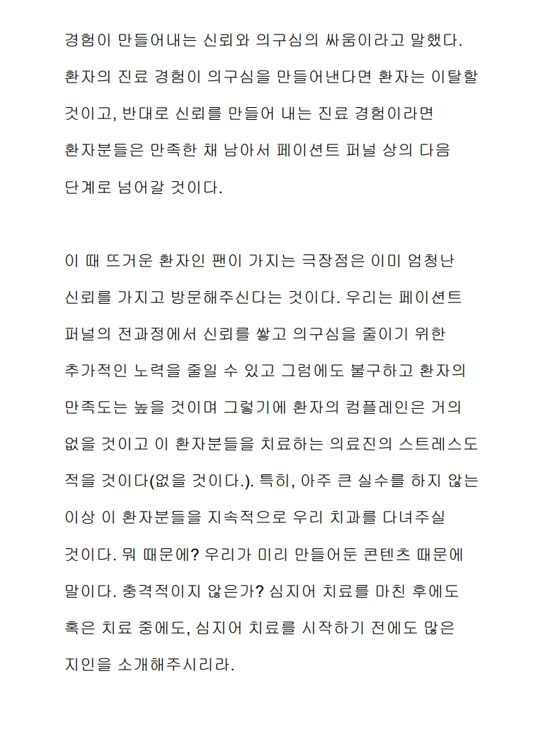환자와의 관계를 그 어떤 마케팅보다 강력하게 만듭니다.